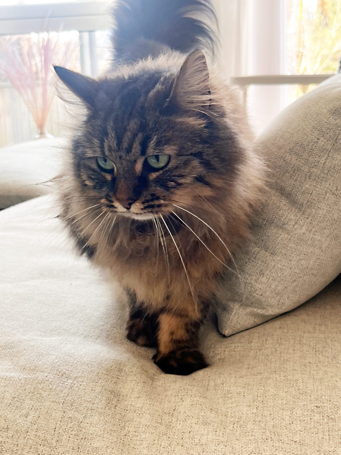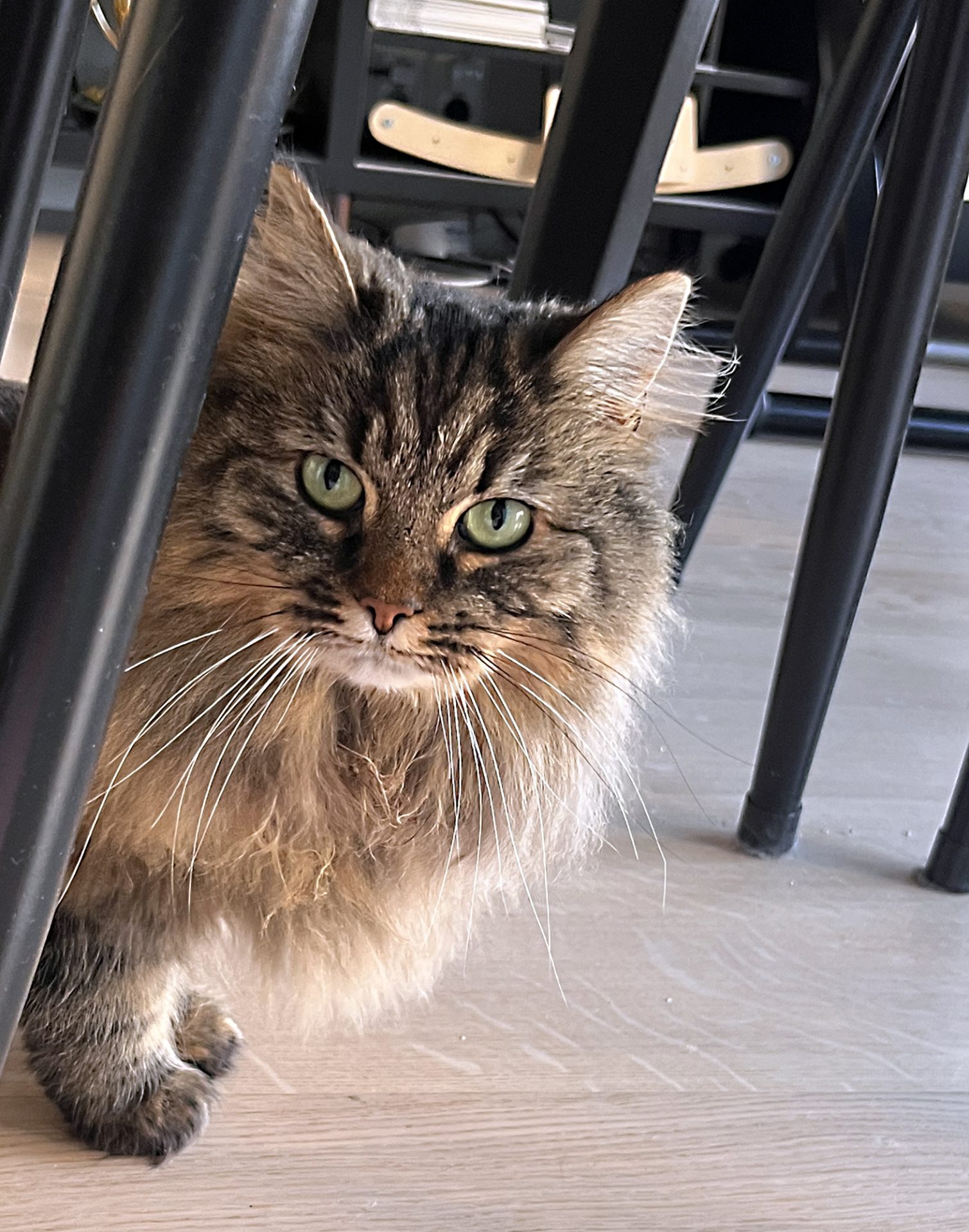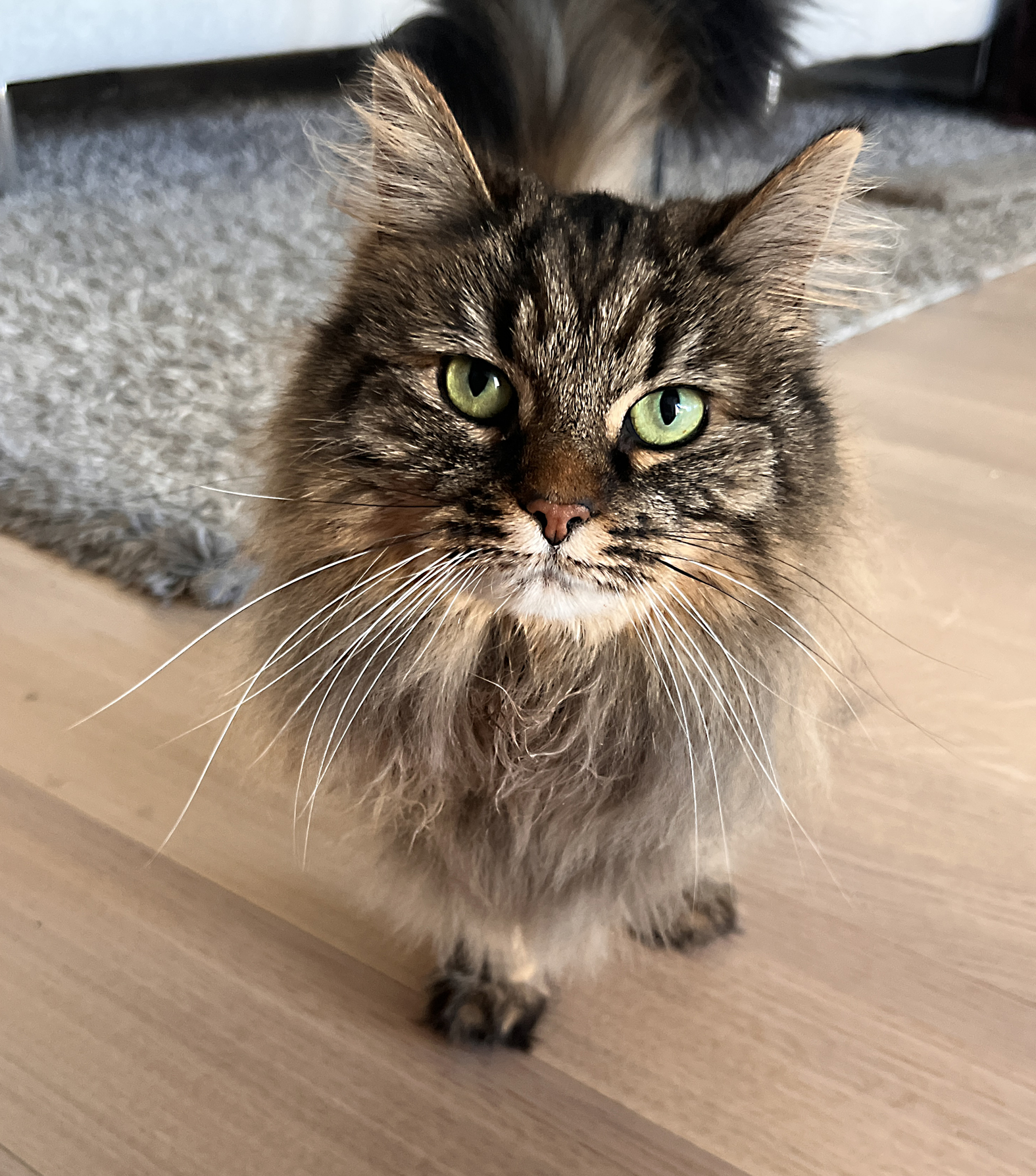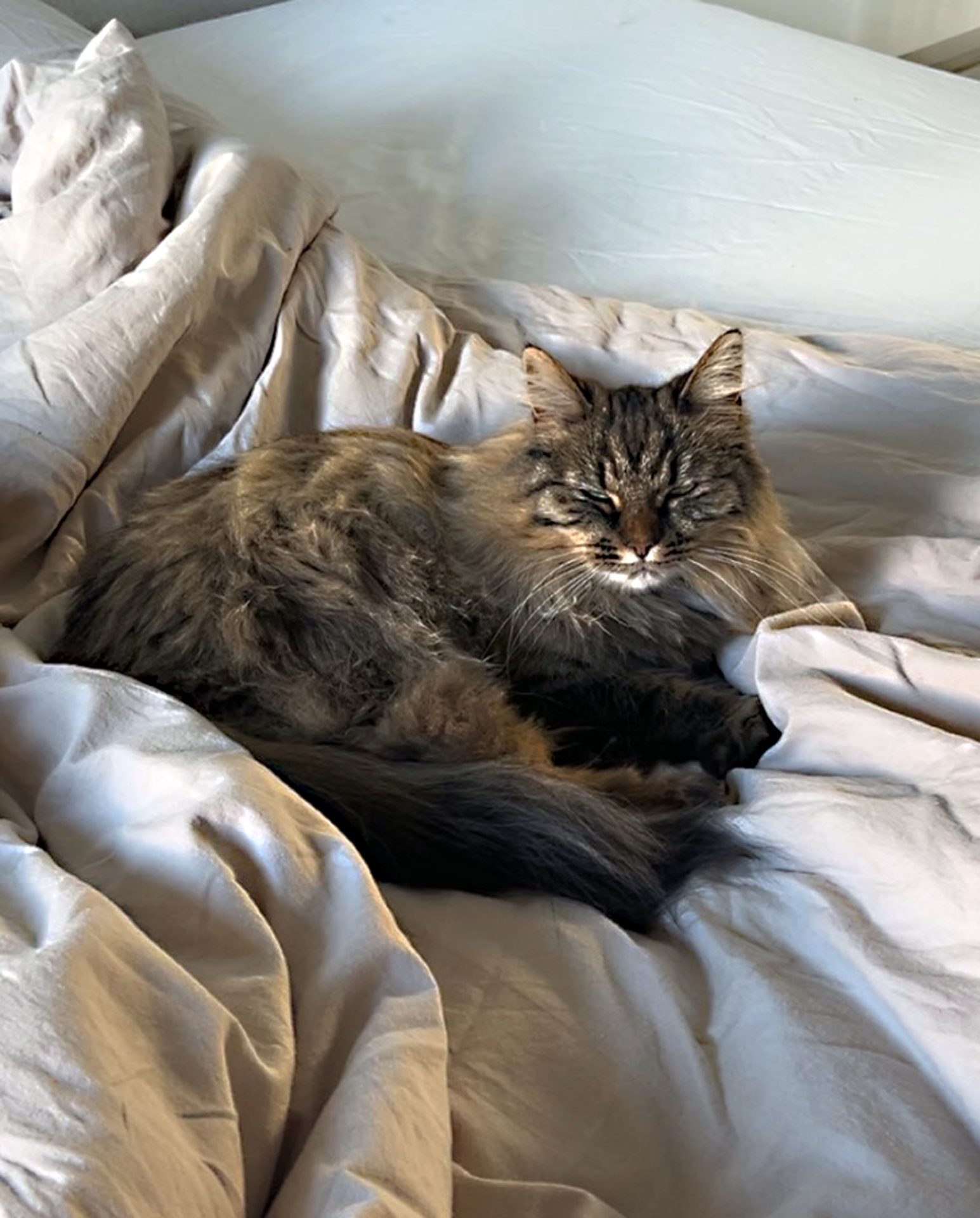 6 år gamle Molly er en nydelig, rolig og kosete katt med mye mimikk. Hun kan begynne å male bare man blunker til henne og snakker rolig. Det er uvisst om hun er rasekatt, men hun har mange av trekkene til en norsk skogkatt, både i utseende og personlighet. Hun har lang og matt pels og må derfor børstes ukentlig for å unngå tover, men det har hun ikke noe problem med så lenge det kombineres med en kose-økt! Akkurat nå har Molly "løveklipp" fordi hun fikk noen tover bakover i pelsen som ble litt for vanskelig å gre ut. All pelsen kan få henne til å se tykk ut, men hun er egentlig en veldig liten og slank katt.