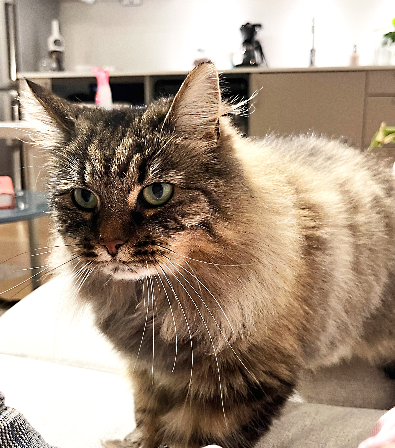 Hun krever ikke mye oppmerksomhet, men kommer med en gang man roper på henne for å få kos. I matveien er hun kresen, og spiser ikke mye annet enn sitt eget tørrfôr.