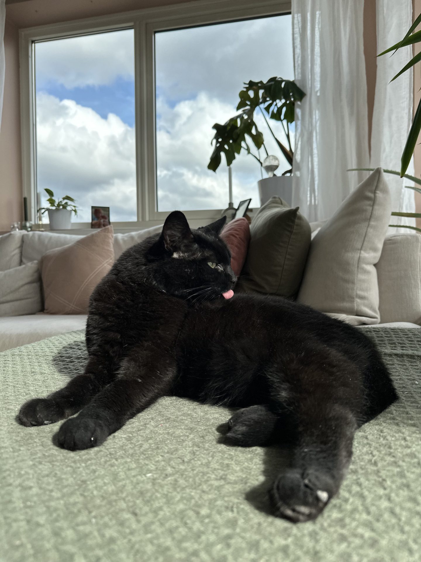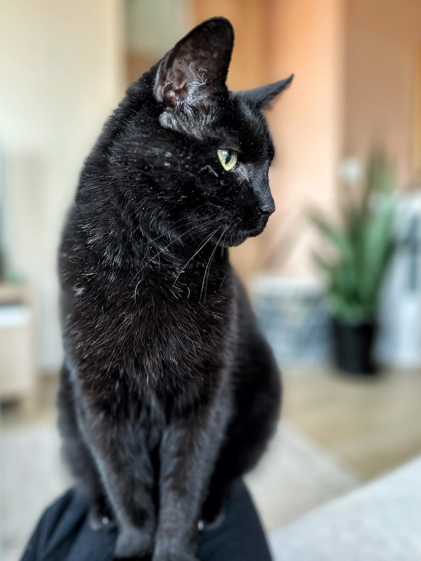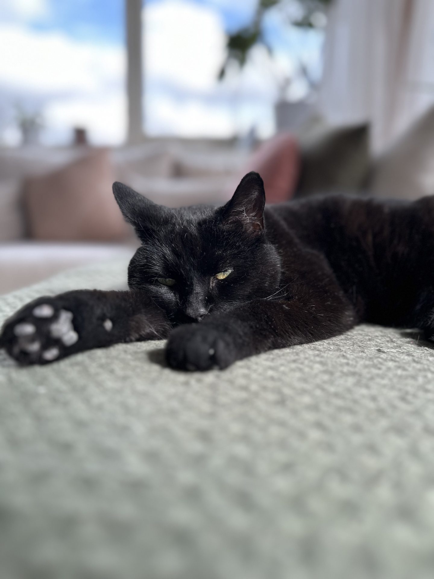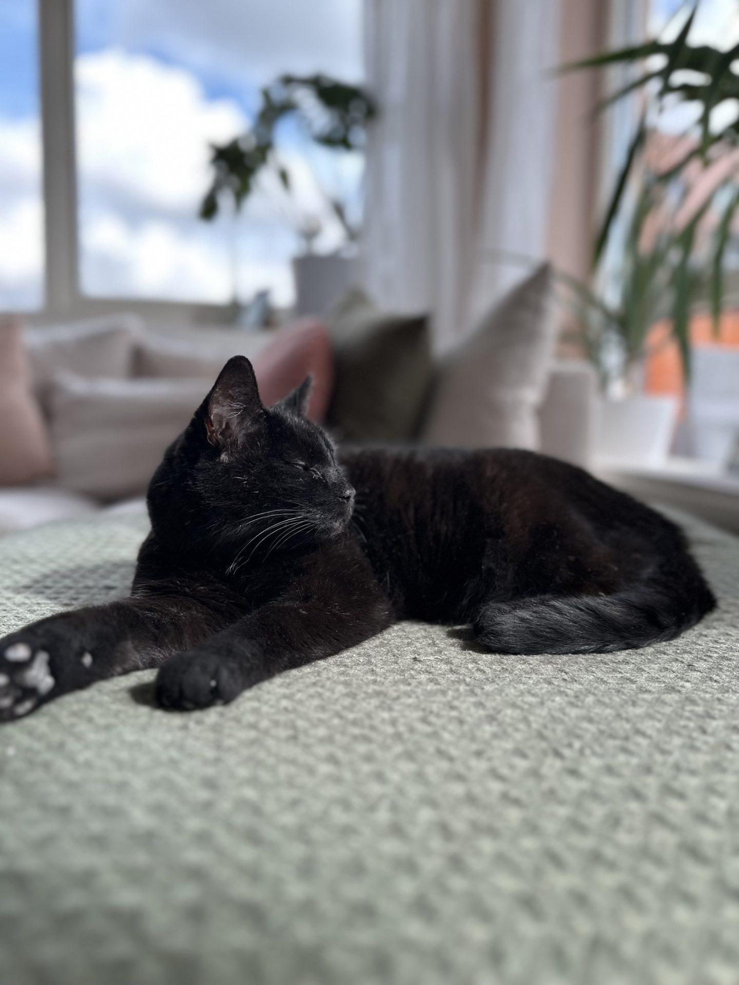 Kosete, sosiale Vårin på 13 år har lyst til å bli din firbeinte bestevenn! Fra jeg åpnet transportburet tok det ikke mange sekunder før Vårin traska ut, malte og ville ha kos. Siden har hun vært sjefen i huset. Hun er ei utrolig tillitsfull, sjarmerende og rolig seniorkatt, og vil trives som eneste katt sammen med rolige voksne.