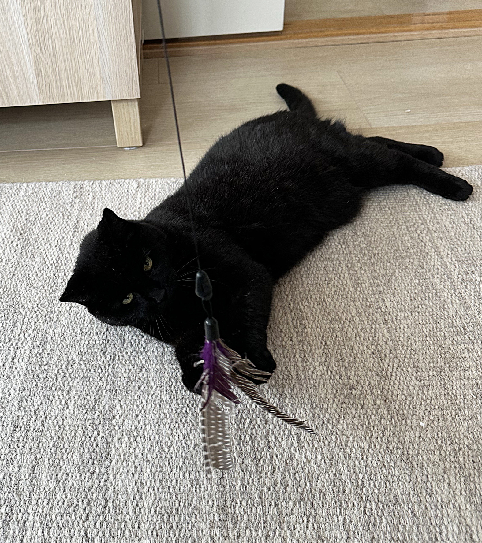 Hun møter alltid opp ved døren når du kommer hjem, og blir alltid med for å hilse på når det kommer noen på besøk. Hun går rett inn for kos og det er hun som bestemmer når hun er ferdig. Hun liker aller best å bli klødd på hodet, og hun er også veldig glad i å bli børstet. Hun er ikke så glad i å bli løftet, men vil i stedet gjerne stå eller ligge ved siden av deg når dere koser.