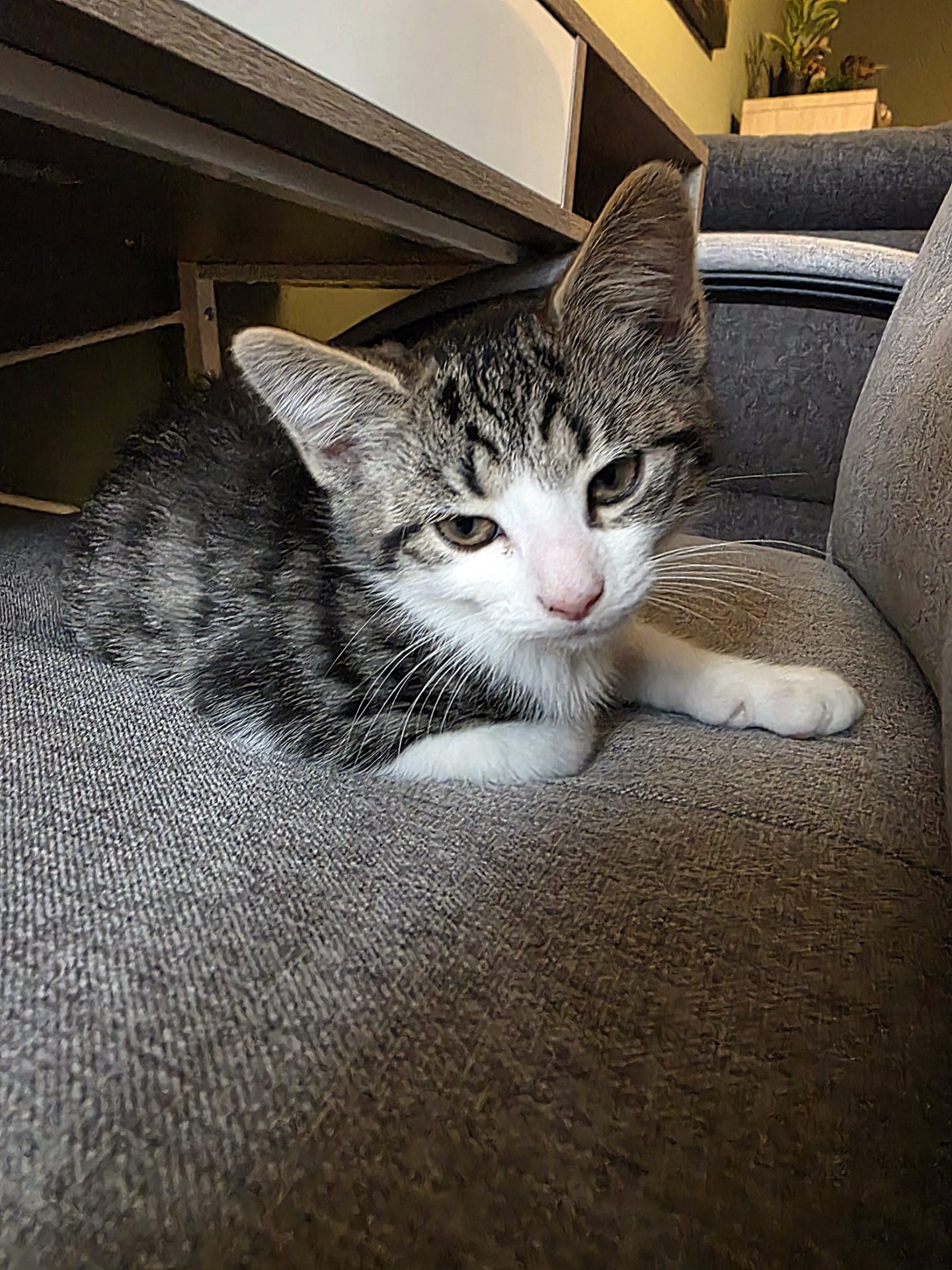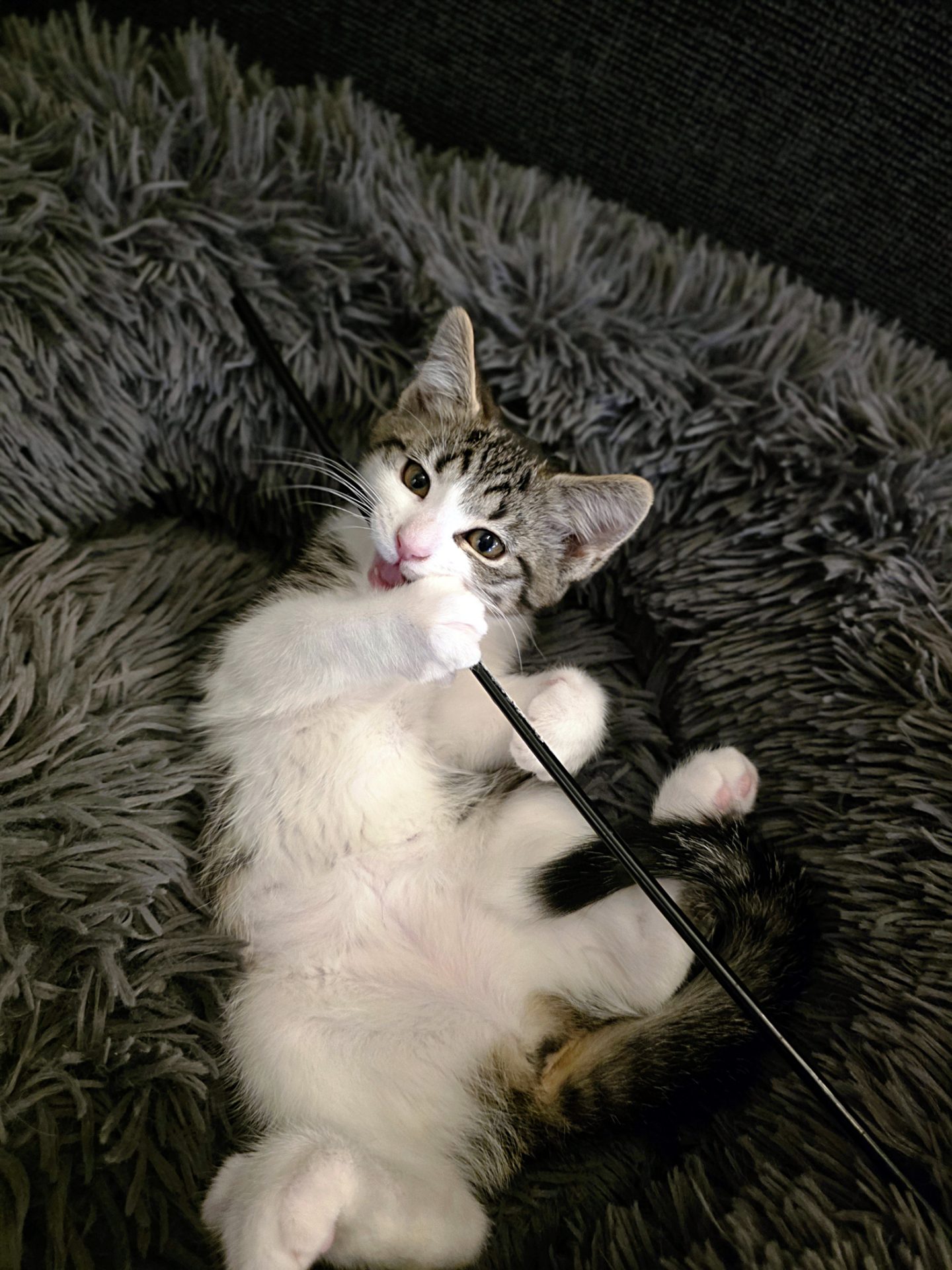 Ellers er Vera som de fleste kattunger, og har ofte mye energi som skal ut. Da spinner hun rundt i leiligheten og leker med de to brødrene sine, “storebror” Pelle som er en måned eldre, og fosterhjemmets voksne katt. Da er hun gjerne høyt og lavt, og får stor glede av å leke både med firbeinte og tobeinte.